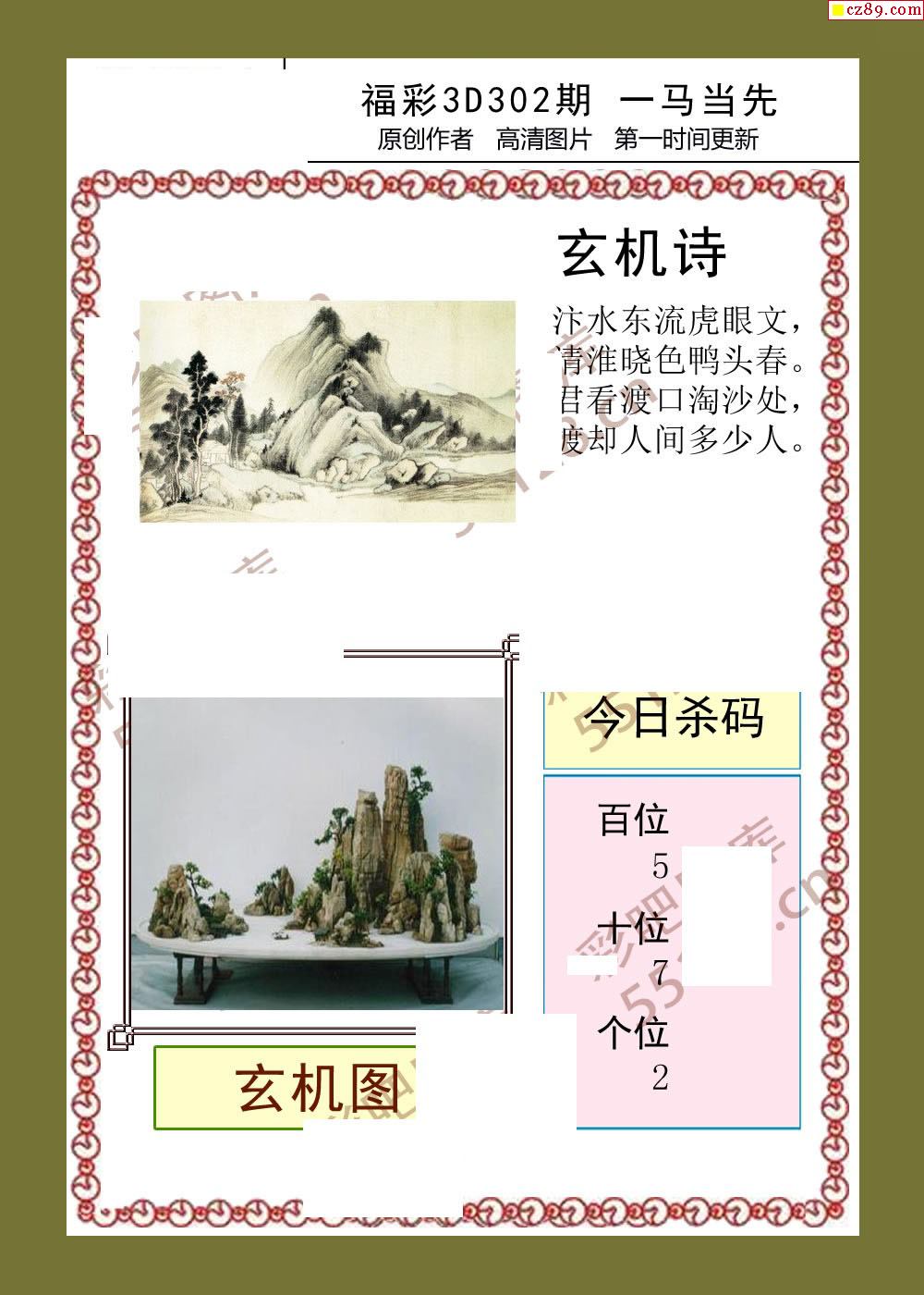 一马当先25年302期福彩3d彩报图